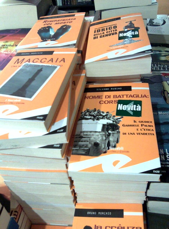 Gli ultimi cinque sono stati giorni intensi. Mi sono diviso tra la Convention di CGM a Genova, che ho seguito per Vita, il Tenco a Sanremo e l’ennesimo malanno di Lisa. E ovviamente Corsaro. E qua stala notizia principale: il libro è uscito nelle librerie di Genova. Allanuova (e mega) Feltrinelli di Genova si trova nella sezione “Gialli/proposte”, in ottima compagnia, vicino a personaggi come Bacci Pagano,l’ispettore Coliandro e Jean-Baptiste Adamsberg, pensate un po’…Diciamo che il Corsaro e Gabriele Palma hanno una concorrenzaagguerrita, ma nello stesso tempo sono orgogliosi (e quasi quasi sisentono un po’ a disagio) di stare lì in mezzo.
